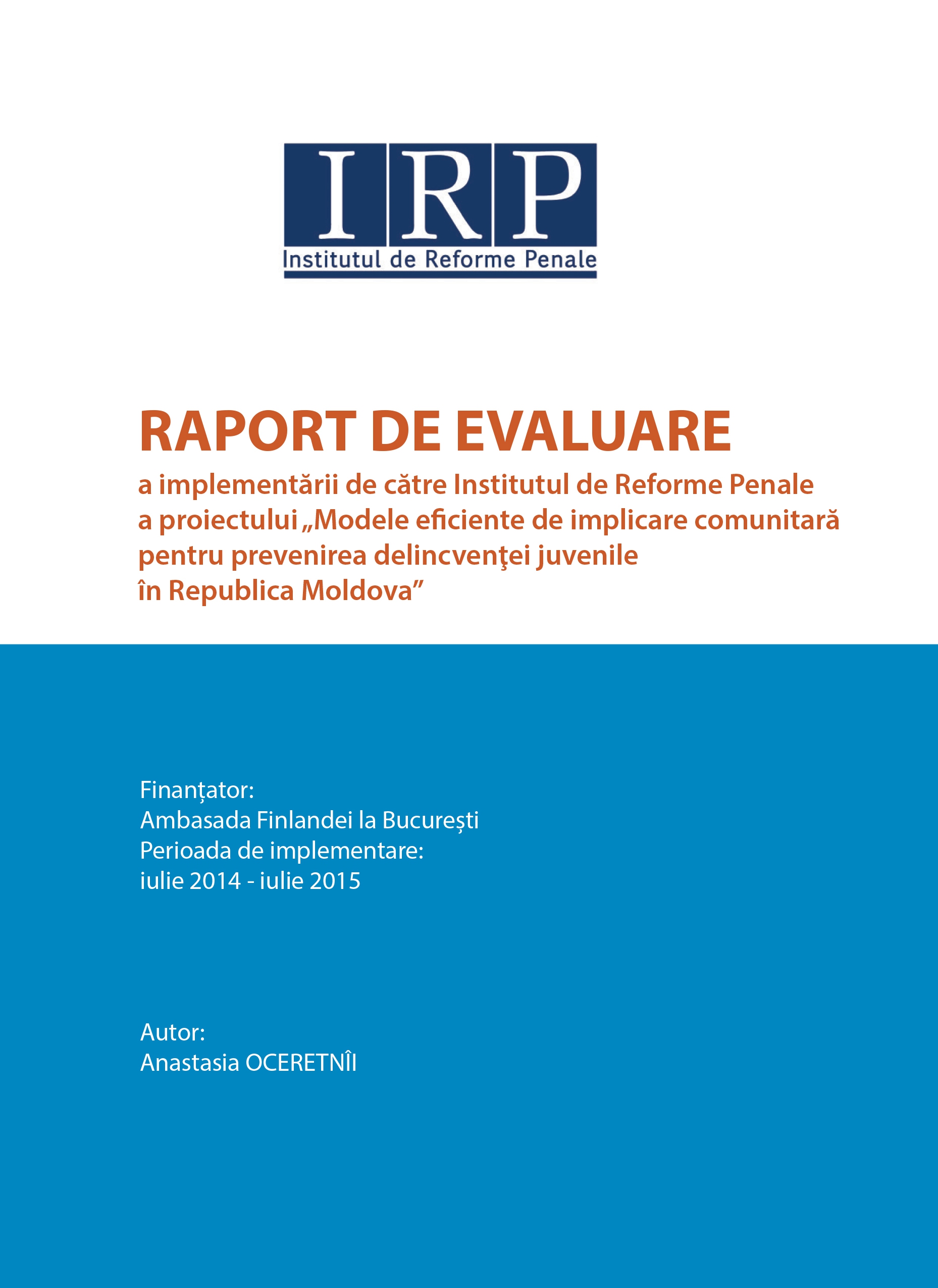 RAPORT DE EVALUARE a implementării de către Institutul de Reforme Penale a proiectului „Modele eficiente de implicare comunitară pentru prevenirea delincvenţei juvenile în Republica Moldova”